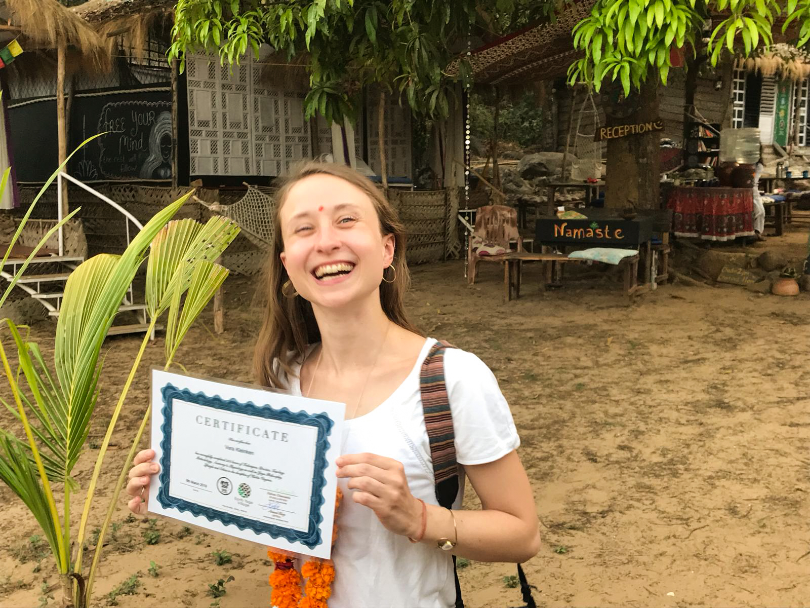 Hello! I am Vera, a yoga instructor in the lovely city of Norwich, UK. I trained in Vinyasa and Hatha at Yoga Alliance certified Earth Yoga Village in Goa, India at the start of 2019 (200 hours). In October 2020 I qualified to teach Pre- and Postnatal yoga (65 hours with Yogamama London) and in December 2020 to teach children & teens (28 hours with Rainbow Yoga).